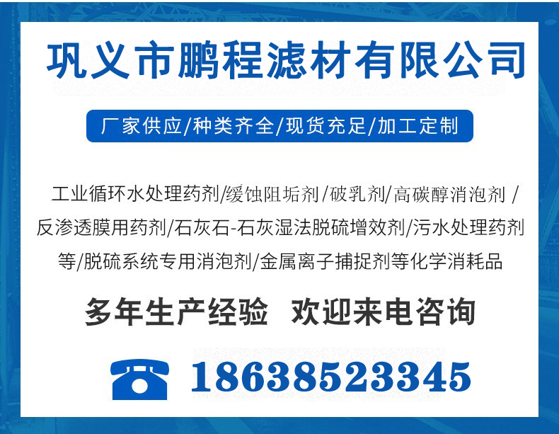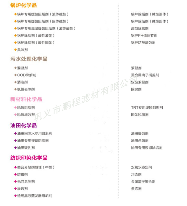 阻垢劑 清洗劑 還原劑 剝離劑 消泡劑——水處理劑廠(chǎng)家 鵬程濾材1月17號(hào)正式放假